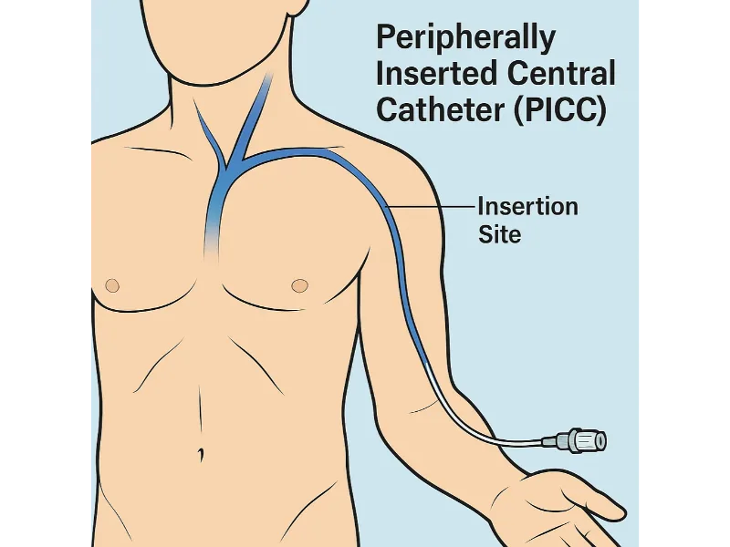 هذا النوع من القسطرة يُستخدم للوصول الوريدي طويل الأمد، وغالبًا ما يُدخل في وريد كبير عبر أحد أطراف الجسم، مثل الذراع.