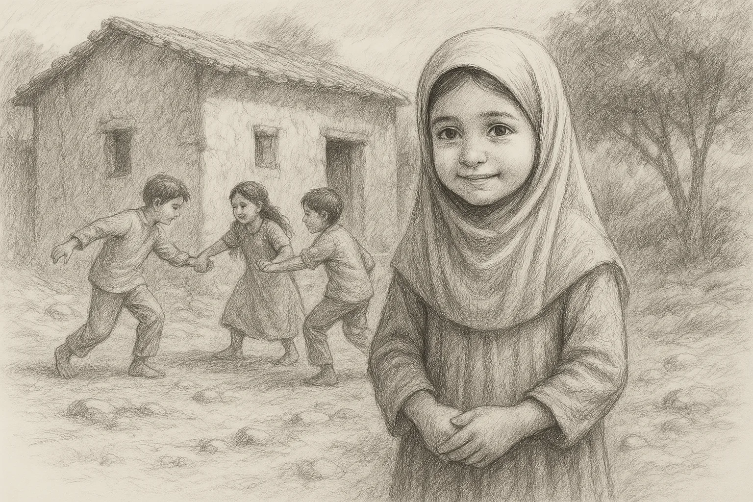 في قرية وادعة، نشأت فاطمة بين جدران بيت طيني دافئ، تتعلم من والديها الصبر والعطاء. كانت الطفلة الحيوية بين إخوة يكبرونها، لا تهدأ حركتها ولا ينضب حنانها.