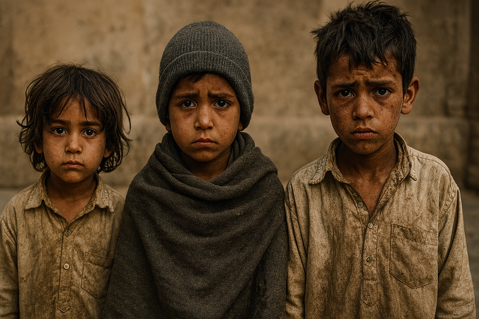 اللوحة تجسّد اليُتم والمسكين والفقير بأسلوب تصوير حديث يحاكي تقنيات آيفون الجديدة في التحكم بالعدسات والعمق.